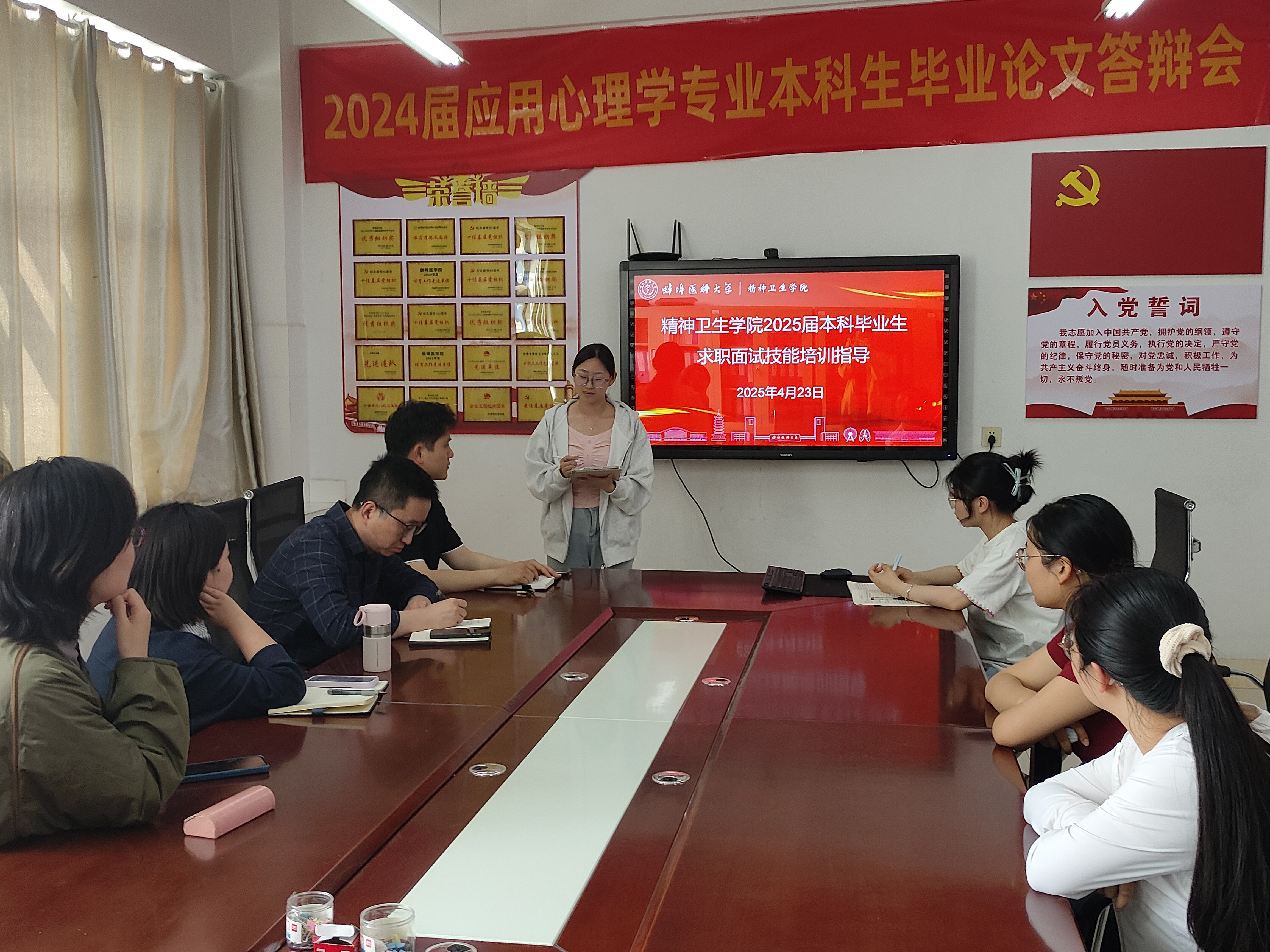 为深入贯彻新时代人才培养要求,提升毕业生就业核心竞争力。精神卫生学院于4月23日在E座511会议室成功举办2025届毕业生求职技能专题培训会。本期培训由学院教师第一党支部、师生联合党支部、学生党支部联合组织开展。2025届应用心理学本科毕业生参加培训。