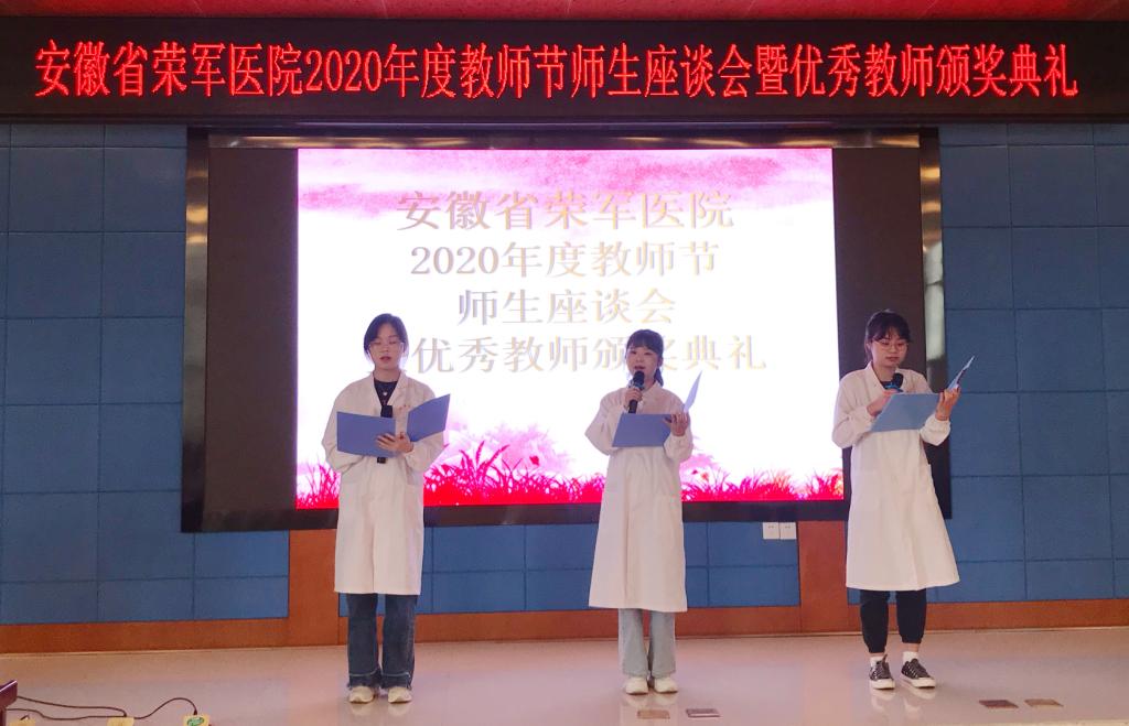 会上还对在临床学院教育、教学工作中表现突出的优秀教师进行表彰。师生同堂收看由科教科和医务科制作的科普宣传片。临床学院的同学们以歌曲、舞蹈、朗诵等多种形式,为老师们送上节日的祝福。正可谓“加减乘除,算不尽无私奉献!诗词歌赋,颂不完心中崇敬!”师恩难忘,情谊长存。