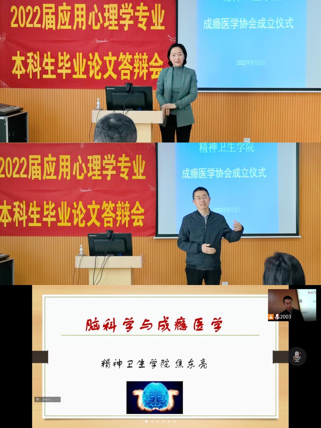 为贯彻落实科教兴国和人才强国战略,着力推进科研、教学协同育人,营造良好的学术氛围与科研环境,精神卫生学院于5月1日上午举办成瘾医学协会创建成立会议暨“脑科学与成瘾医学”主题讲座。院党委书记马嬿和副院长、成瘾医学实验室负责人焦东亮博士到会指导。精神医学实验中心宋佩佩、李昊楠两位老师及全体协会成员参加会议。