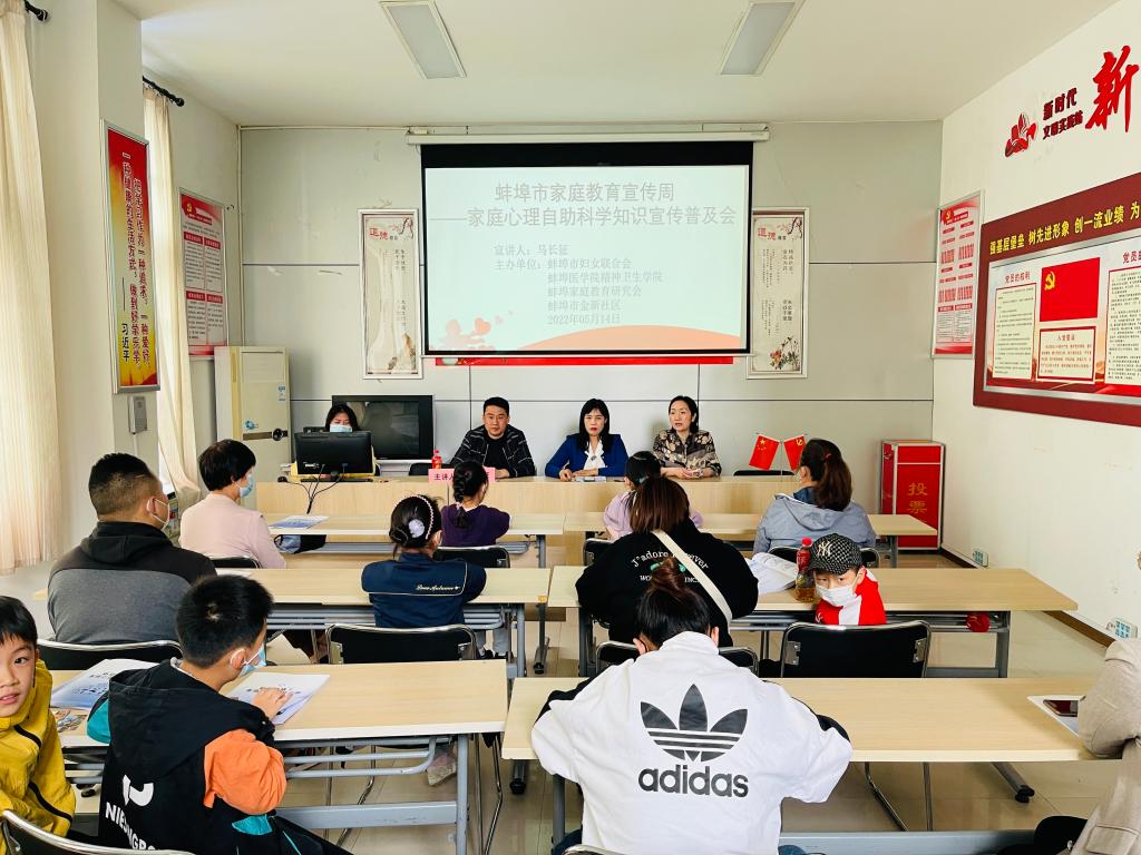 为保障常态化疫情防控条件下儿童青少年的心理健康,5月14日,在首个全国家庭教育宣传周活动之际,应蚌山区淮河社区中心金新社区要求,精神卫生学院师生党员走进社区开展送教服务,举办“健康成长,科学护‘心’”为主题的家庭心理自助科学知识宣讲和答疑指导。