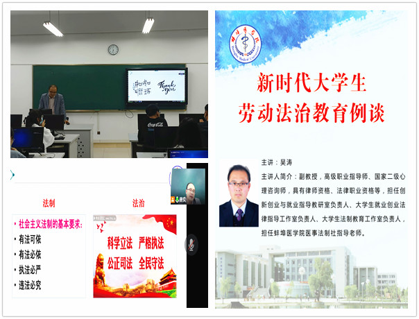 5月10日下午,“新时代大学生劳动法治教育例谈”专题讲座在E座515举行,特邀创新创业与就业指导教研室负责人、大学生就业创业法律指导工作室负责人、辅导员吴涛老师,结合《中华人民共和国劳动法》、“13431”劳动教育理念等阐释劳动的重要意义以及劳动的育人价值,引导大学生深化正确的劳动价值观念。