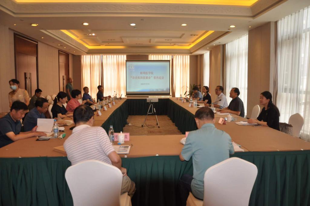7月7日,校党委书记蒋家平率队赴铜陵市开展“访企拓岗促就业”活动。与铜陵市卫生健康委员会签订人才就业合作协议。与铜陵市副市长杨文萍共同为蚌埠医学院铜陵市第三人民医院实习医院揭牌。铜陵市卫生健康委员会主任、党组书记赵开荣主持交流座谈会,铜陵市第一人民医院等8家市直医院参加座谈交流。校学生处负责人、精神卫生学院陪同考察调研。