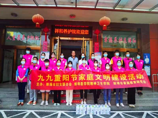 10月4日是重阳佳节,人们对寄寓着浓郁传统文化的重阳节历来有着特殊的感情。10月1日下午,精神卫生学院组织“润心”教学团骨干和部分国庆留校的学生,来到蚌埠市祥和养护院开展志愿服务活动,度过一个特殊意义的国庆节日,用志愿者精神传达青年学子对传统佳节所蕴含的传统文化的敬意和感恩,向新中国成立73周年华诞献礼。