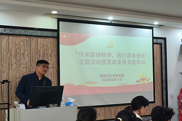 3月11日,班级思政委员每月一期专题培训在E座五楼举行。本期培训主题是“传承雷锋精神,践行青春使命”。精神卫生学院师生联合党支部书记、辅导员潘梦蝶主持培训会。学院党委书记马嬿、副书记李礼到会指导,学院各班级思政委员及各学生社团骨干参加培训会。