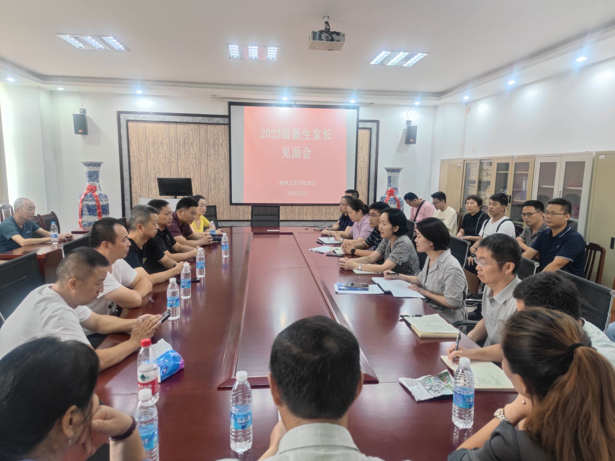 精神卫生学院2023年招收本科生共160人,精神医学专业录取分数创出新高。为进一步加强学院与家长的沟通交流,有效形成家校协同育人合力,更好达成专业培养目标和育人目标,精神卫生学院以新生报到日为契机,于8月27日上午召开2023级新生家长见面会。学院领导班子、党支部书记、教研室(实验中心)负责人和专兼职辅导员参加了见面会。会议由党委副书记李礼主持。