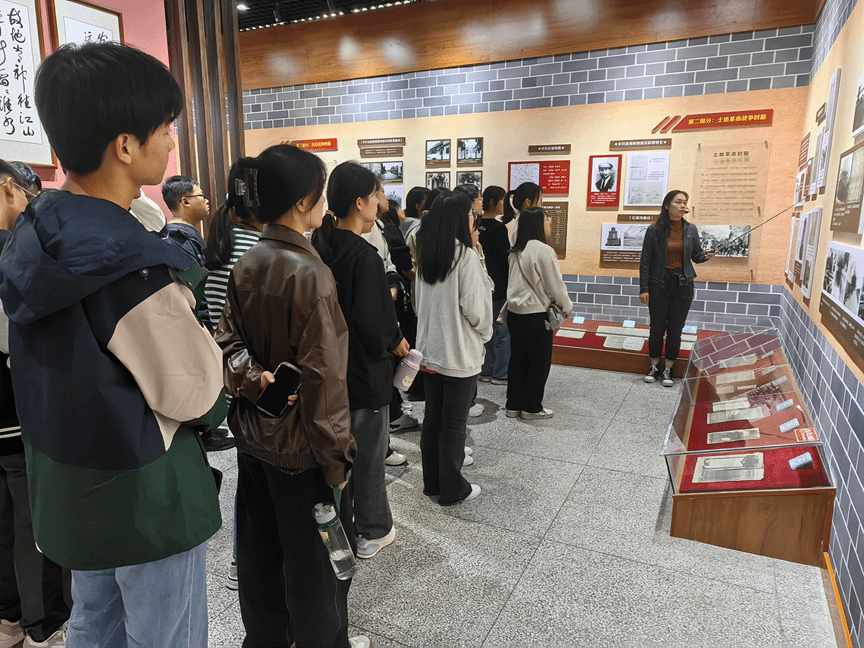 同学们首先来到蚌埠市烈士陵园陈列馆。在讲解员的带领下,同学们深刻了解了蚌埠"二七"大罢工斗争、西北阻击战、抢修淮河大铁桥等红色故事。同学们沉浸在掷地有声的讲解中,仿佛又回到了英雄们抛头颅洒热血的战争年代,真切地感受到了革命志士不屈不挠、不怕牺牲的精神。