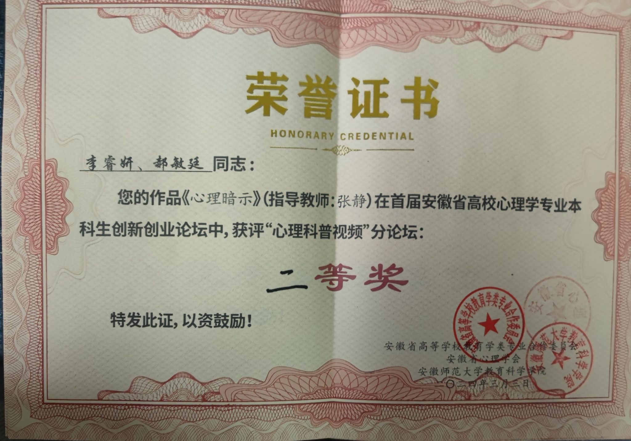 3月2日至3日,首届安徽省高校心理学专业本科生创新创业论坛现场展示环节在安徽师范大学进行。该赛事由安徽省高等学校教育学类合作委员会、安徽省心理学会、安徽师范大学教育科学学院联合主办,包括心理学实验设计、现实问题解决、心理学产品设计、心理科普视频四个分论坛。赛事评委由江苏、山东、上海及安徽等省的心理学专家组成。精神卫生学院从今年初启动赛事组织和选拔,旨在以赛促教,促进学生掌握心理学基本理论、研究技能与实践应用方法,提升科学研究、团队合作、学科交叉以及实践转化等能力;展示心理学魅力与科研创新成果,传播产学研融合的最新理念,从而强化“心理学解决关键科学问题和回应国家重大战略和社会需求的能力”的育人导向,为党和国家培养心理学一流创新人才。