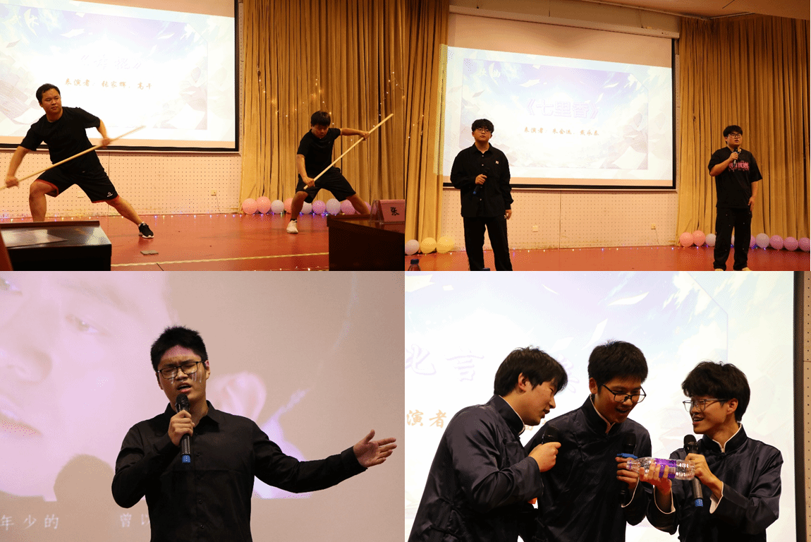 毕业晚会准备了丰富的文娱和曲艺节目,有舞蹈、相声、京剧、小品、歌曲演唱、武术表演等。晚会在毕业班学生姜洪举、洪伟哲、朱心郁和余晨的主持下拉开帷幕。首先出场的是2022级应用心理学易言玉等带来的精彩小品《谁是真凶》,惟妙惟肖的表演瞬间点燃了全场观众的热情。2021级应用心理学操丹青、张菁雨阳带来的激情四溢的舞蹈串烧、2024届精神医学毕业生王恒带来的京剧霸王别姬《劝君王》,获得台下观热烈的掌声。表演中间穿插设置抽奖互动环节,将现场氛围推向更高。2023级精神医学钱伟正等四位同学带来的诗朗诵《不忘初心》寄寓了对毕业生们的美好祝愿。由2023级精神医学包景琦、应用心理学朱会运和戴永泰带来的歌曲《假如爱有天意》《七里香》,让同学们沉浸在美好的音乐中。2019级精神医学张家辉、高干两位同学的武术表演《武棍》,矫健身姿、娴熟的技艺赢得了在场观众的阵阵掌声。 青云曲艺社李家肇团队的相声《此言差矣》以其幽默诙谐的表演赢得了在场师生的掌声。最后,毕业生深情合唱《夜空中最亮的星》,表达了对母校的感恩对未来的憧憬。