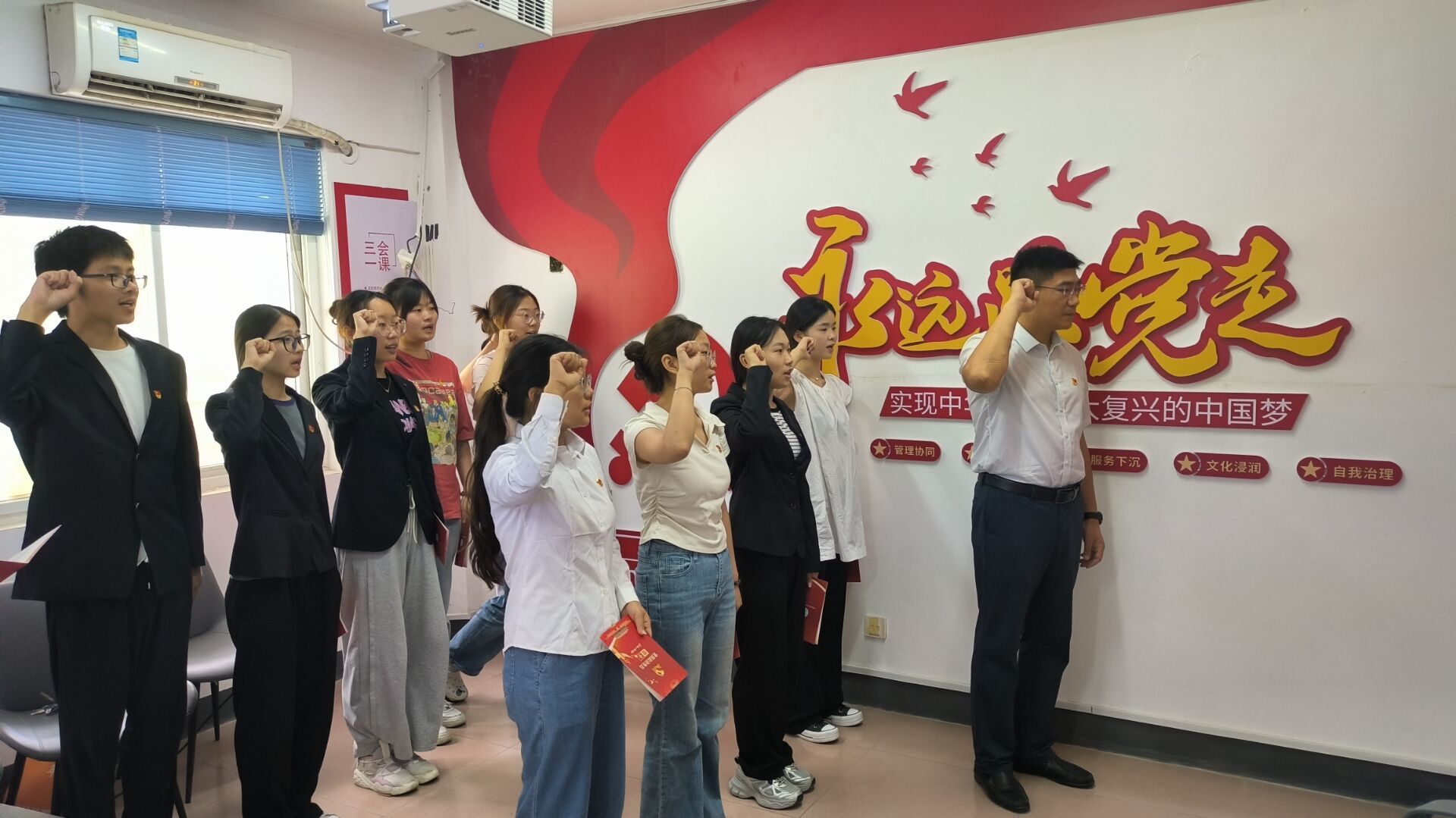 教师组活动包括学习传达习近平总书记在中共中央政治局第十五次集体学习时就贯彻落实新时代党的建设总要求、进一步健全全面从严治党要求的重要讲话指示精神,学习传达中共中央组织部向全国共产党员的节日问候!学院党委书记马嬿结合党纪学习教育讲“加强纪律建设 强化使命担当”专题党课;新党员杜文博、老党员沐林林结合工作职责交流分享,谈使命担当;重温入党誓词,全体党员庄严宣誓,坚守入党初心,牢记使命担当,对党忠诚,积极工作。