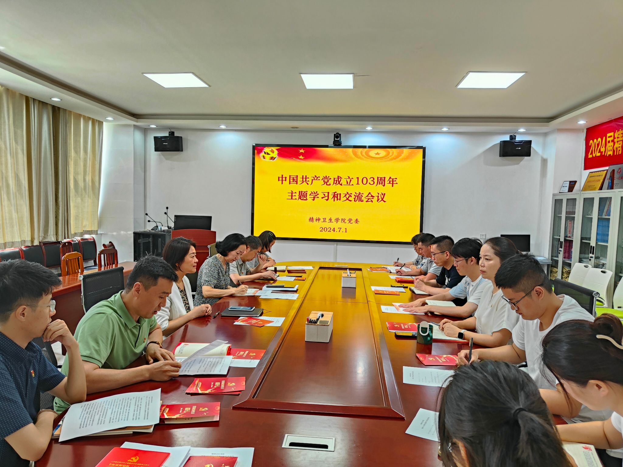 2024年7月1日上午,精神卫生学院党委组织师生党员开展庆祝中国共产党成立103周年主题党日暨学习交流活动。活动结合实际设计了教师组和学生组两个组别,分别在学院党员活动室和 “一站式” 学生社区党员活动室举行。学院全体师生党员参加活动。