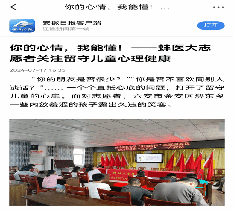 郭小虎首先汇报了今年“三下乡”社会实践活动组织情况和进展状况。22支实践团队负责人围绕项目主题、前期进展、取得成效、当前存在问题与后半段活动计划等逐一汇报。其中郑远昕同学带领的“阳光陪伴”志愿服务队开展的“关爱留守儿童心理健康”活动,受到了当地群众的欢迎和好评,安徽日报、六安新闻网等相关媒体对活动进行了报道。“拒唱‘毒’角戏——禁毒知识科普宣讲团”、“语润江淮”普通话调研与公益宣讲团、“敬老慈幼,扬帆未来—绿萝花心理健康教育服务团”等,围绕乡村振兴、红色主题教育、环境保护、心理健康服务等活动也取得的较好的实践成果。