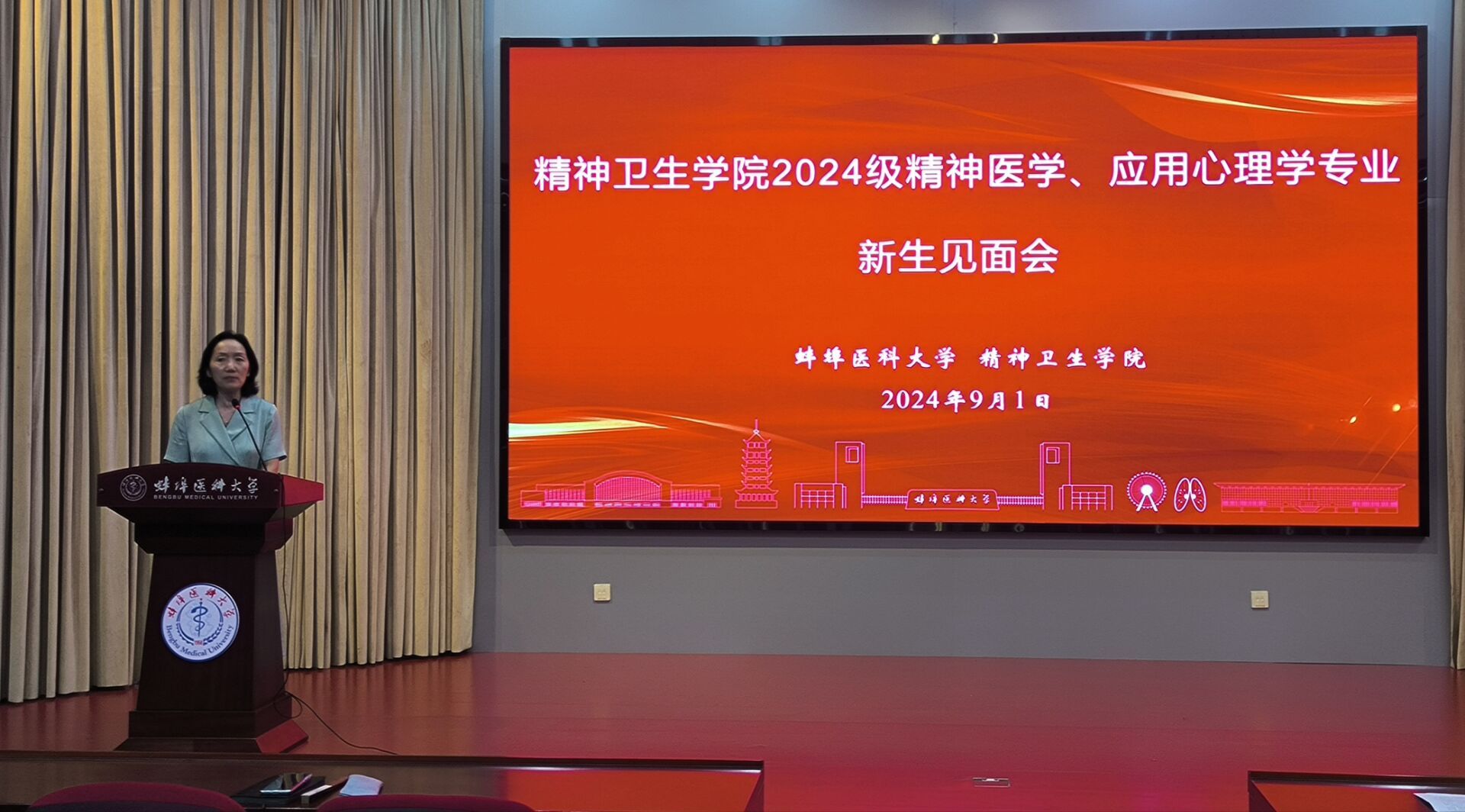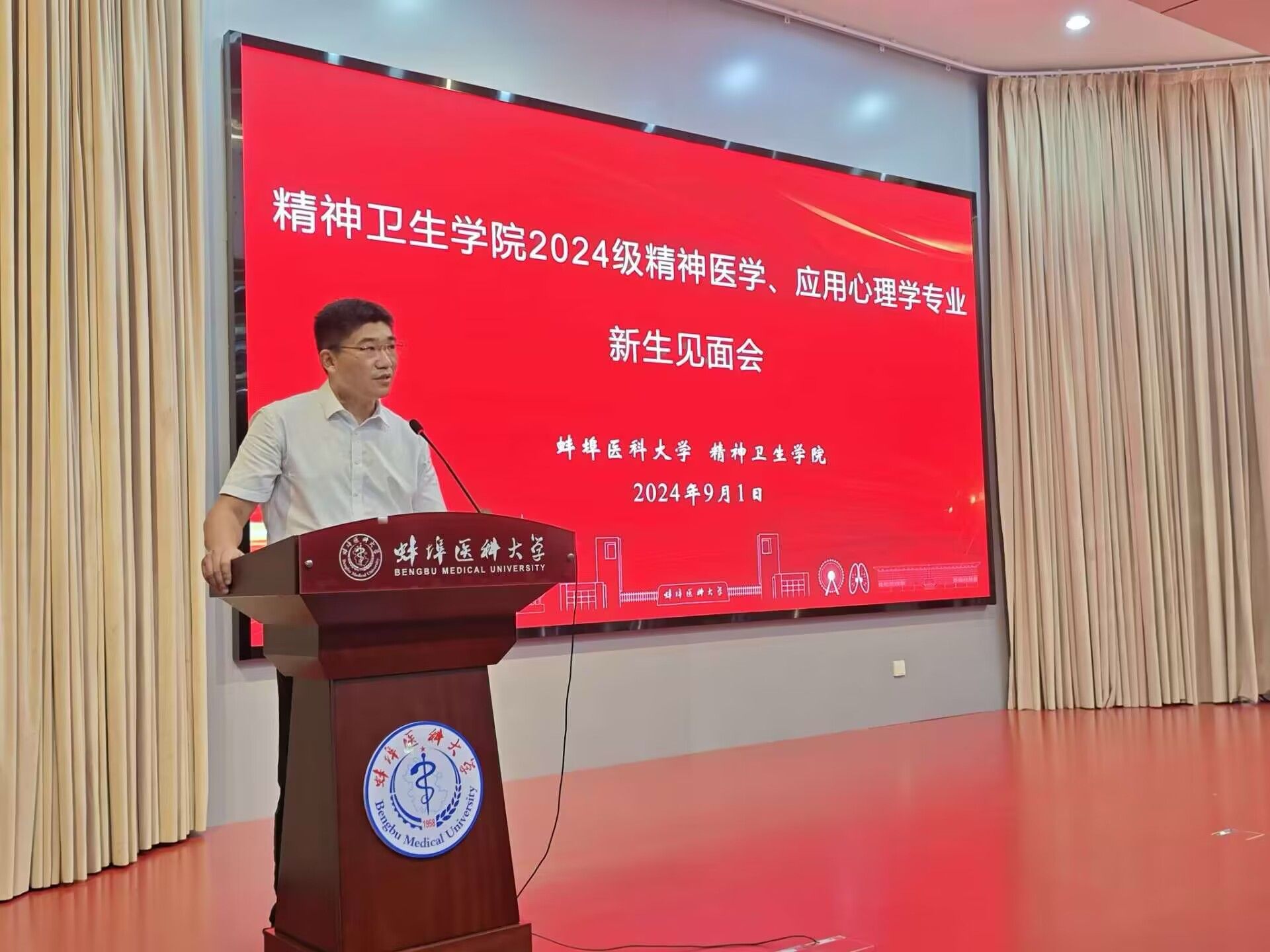 焦东亮向参会学生和家长全面介绍精神医学和应用心理学两个专业的基本建设情况。从专业发展角度,为同学们分析了社会需求、就业概况以及本科生参加科研的方法和途径,鼓励同学们从大一开始积极学习、勤奋学习。
