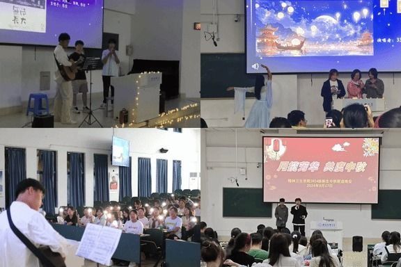 2024年9月17是甲辰龙年中秋节。月到中秋分外明,每逢佳节倍思亲。为进一步凝聚新生的团队合力,精神卫生学院在理论楼T1教室举办2024级新生中秋联谊晚会。晚会以“月揽芳华 共度中秋”为主题,对每一位新生来说寄寓着此时此刻起,人生新的开始和力量,要抓住机遇,展现自己的实力和潜力,开启新的征程。军训教官、学院党委书记马嬿、副书记李礼、辅导员郭小虎、张猛参加晚会,和2024级全体新生共度佳节。