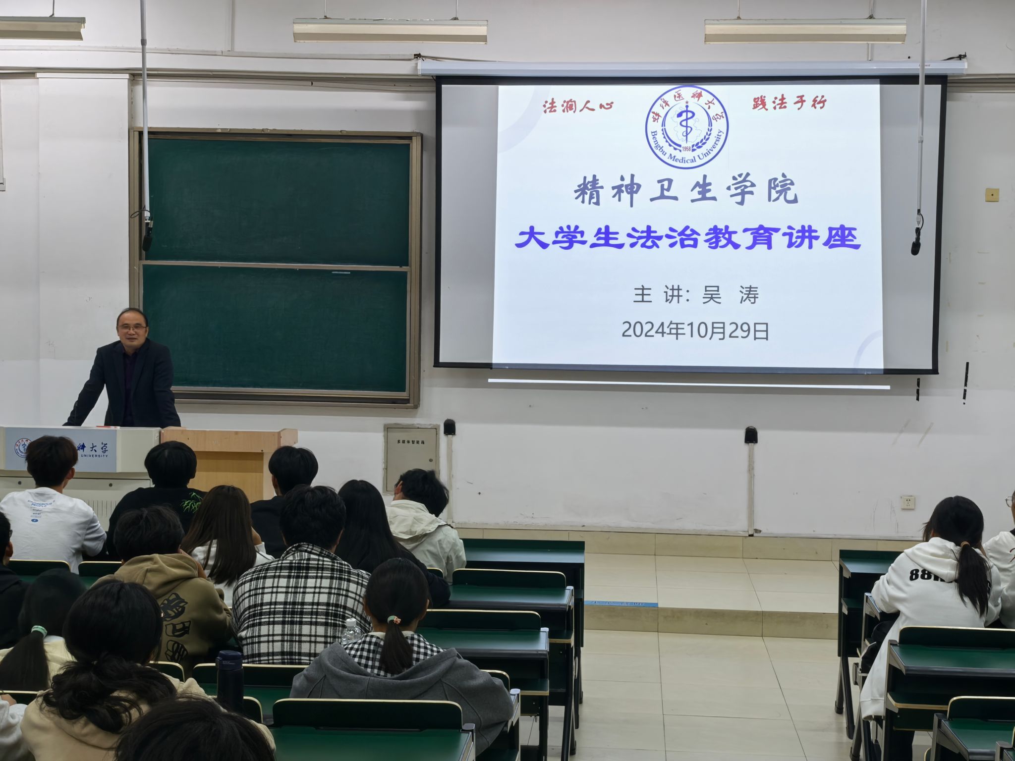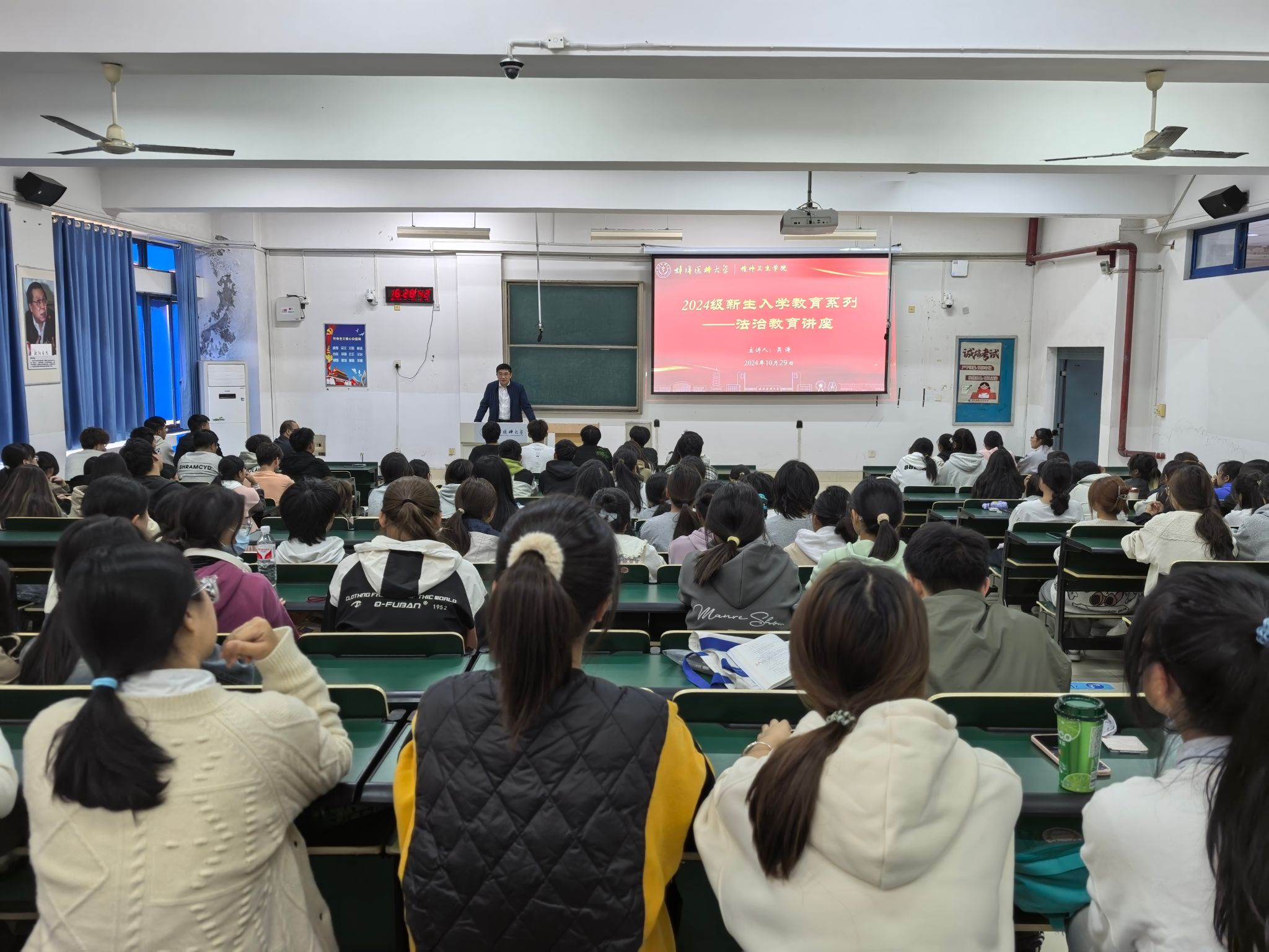 加强法治教育提高大学生的法治思维,有助于帮助学生在日常生活中运用法律原则和规范来分析和解决问题。这种思维方式不仅包括对法律知识的了解,更重要的是能够将这些知识应用到实际情境中,形成正确的判断和行为。10月29日下午,学院特邀校学生工作处副处长吴涛老师为新生开展入学教育系列之法治教育讲座,讲座由学院党委副书记李礼主持,学院2024级全体新生参加。