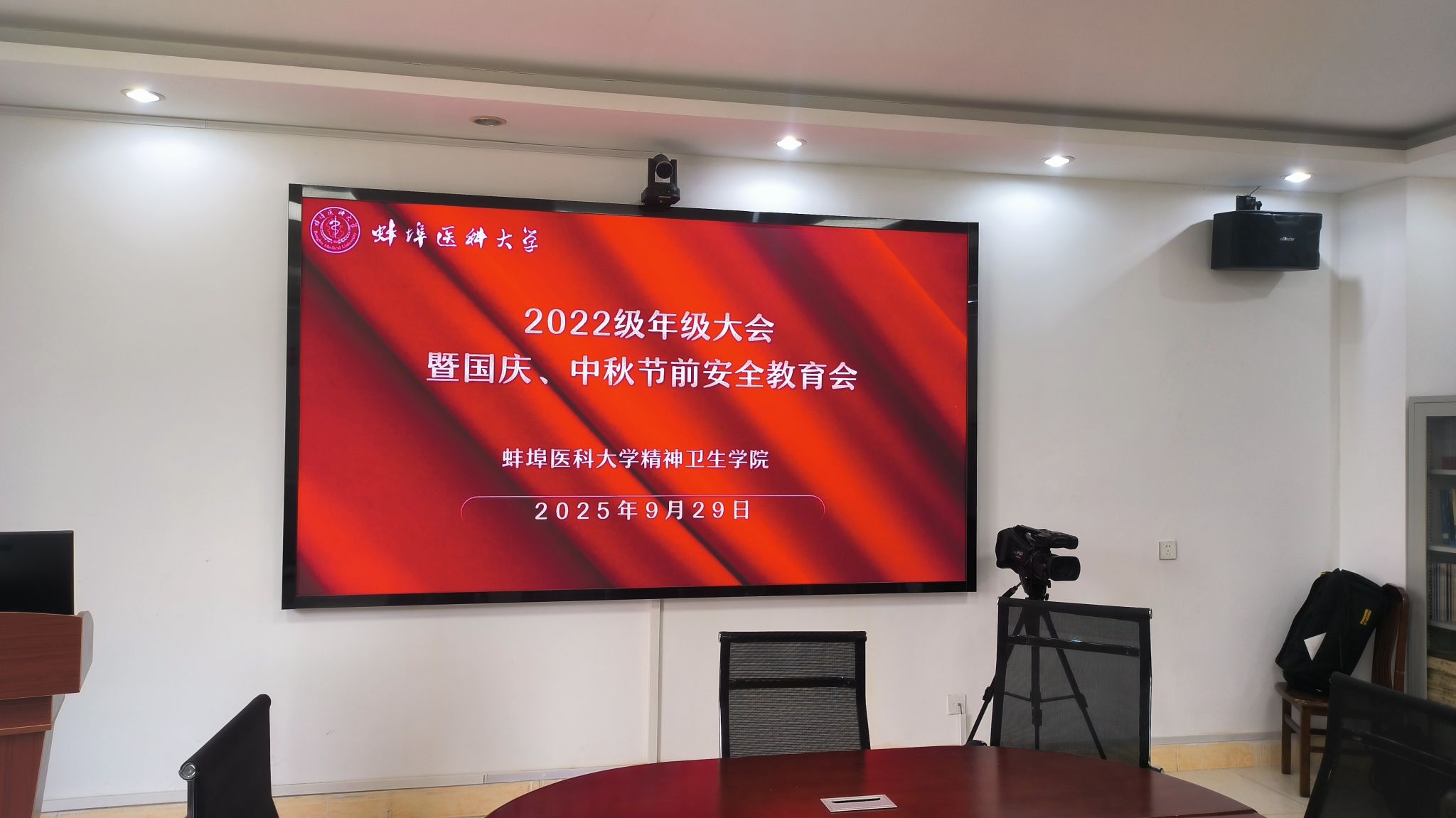 为切实做好假期学生安全教育管理工作、增强学生安全防范意识,同时持续推进学风建设、营造积极向上的育人氛围,9月29日,精神卫生学院采用线上线下相结合的方式,召开 2022 级、2023 级 “双节” 前安全教育暨学风建设主题班会,班会由辅导员郭小虎主持。