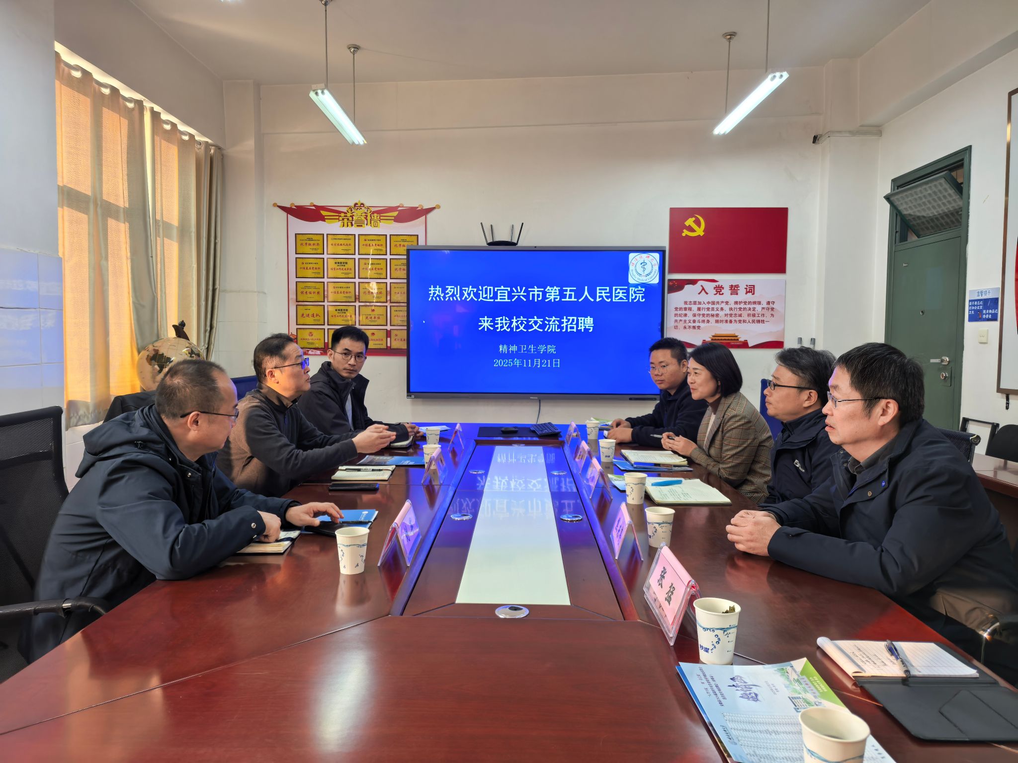 招聘会上,宋松书记对两家医院的到来表示热烈欢迎,并介绍了学院发展概况与2026届毕业生整体情况。宜兴市第五人民医院院长管胜、海南省安宁医院院长李磊分别就各自医院的发展现状、人才需求和岗位设置作了详细说明。双方还围绕人才培养、就业联动等议题进行了深入交流。