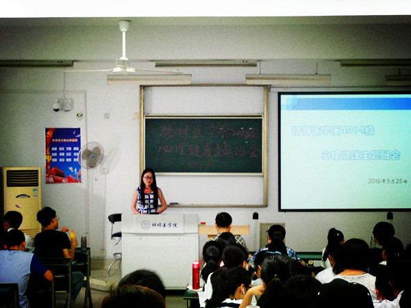 为进一步增强大学生心理健康意识,普及心理卫生知识,提升心理健康素质,精神医学系2014级组织开展了心理健康教育活动,精心制作心理健康主题板报,请同学书写心灵寄语;并于5月25日全国大学生心理健康日的当天下午,在理论楼206教室组织开展了“伴我同行,让压力飞”心理健康主题班会。