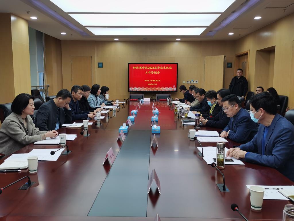 姚文兵介绍了学校历史沿革、内涵建设、人才培养以及2023届毕业生等基本情况;介绍了国家肿瘤区域医疗中心建设情况和综合性国家区域医疗中心推进情况,就“蚌医卫健联盟”战略合作项目进行了详细介绍;并邀请淮南市卫健委率队到我校举办专场招聘会。