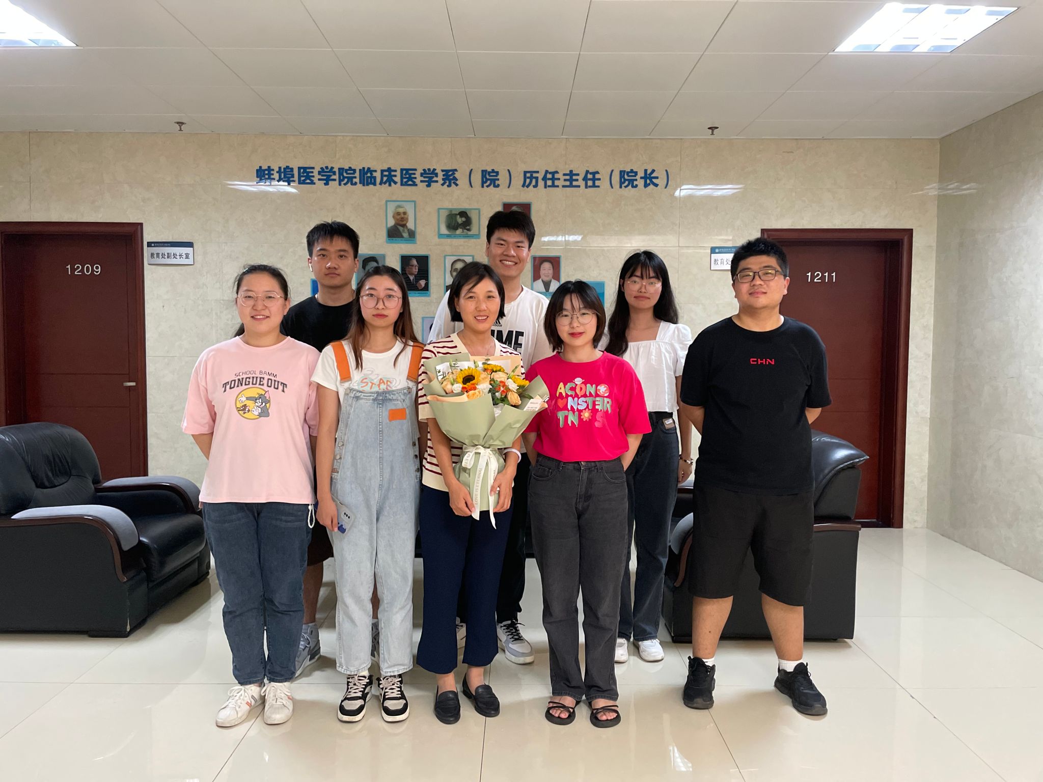 同日,附属芜湖市第四人民医院临床教学班同学们,在班长宋洵的带领下,手捧注满全班同学心意的花束,向科教科杨萍老师表达节日祝福,传达对临床学院领导和老师们精心培养和全力保障的感恩之情。蚌医一附院临床教学班的同学们也在班委带领下给科教科的老师们送去了节日的祝福。