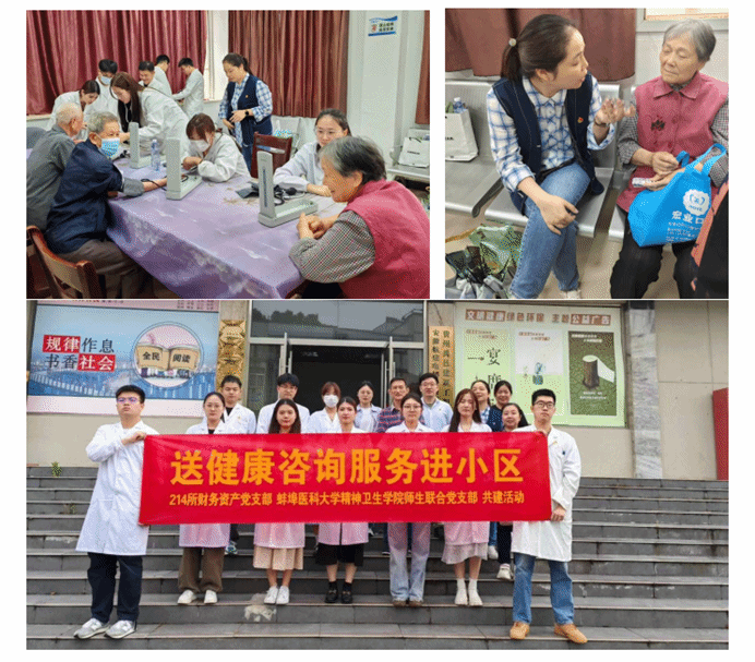 为深入开展党纪学习教育,进一步增强党支部政治功能和组织功能,坚持以学铸魂,践行为民服务,5月30日下午,精神卫生学院师生联合党支部在支部书记朱琳的带领下,联合中国兵器工业部第214研究所财务资产处党支部,共同开展“健康服务进社区”的主题党日活动,发挥专业所长,为迎湖社区居民提供健康咨询和康复辅导服务。
