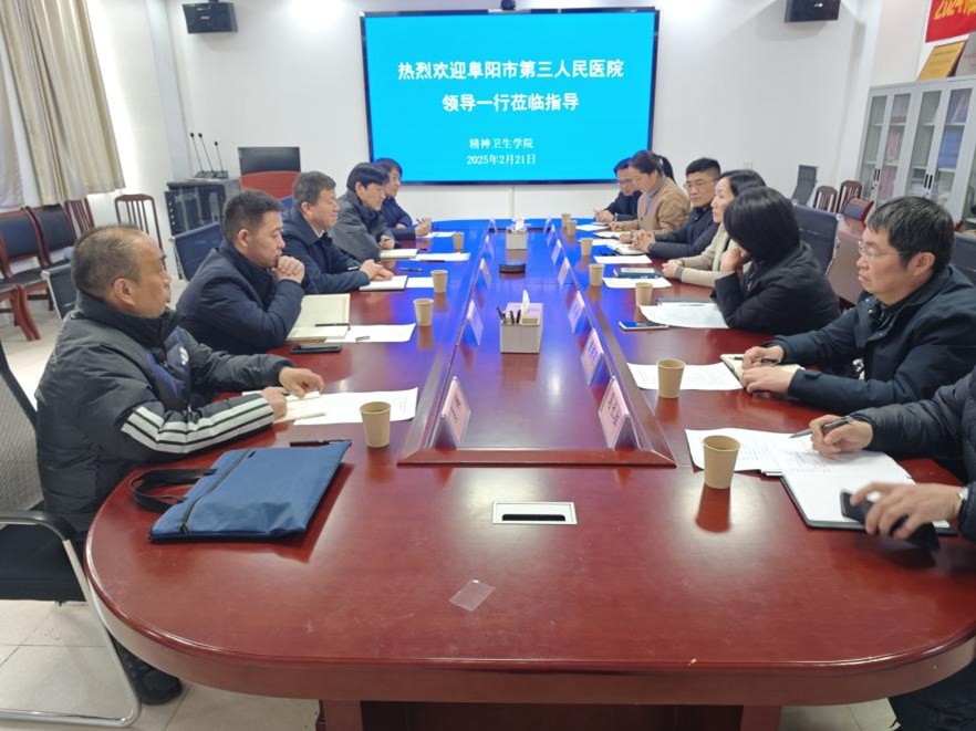 2月21日下午,阜阳市第三人民医院党委书记刘云率科教科、信息科、精神科等一行六人来访我院,就学科建设、临床教学、科研合作等议题展开深入交流。精神卫生学院党委书记马嬿、院长张静及相关人员参会。