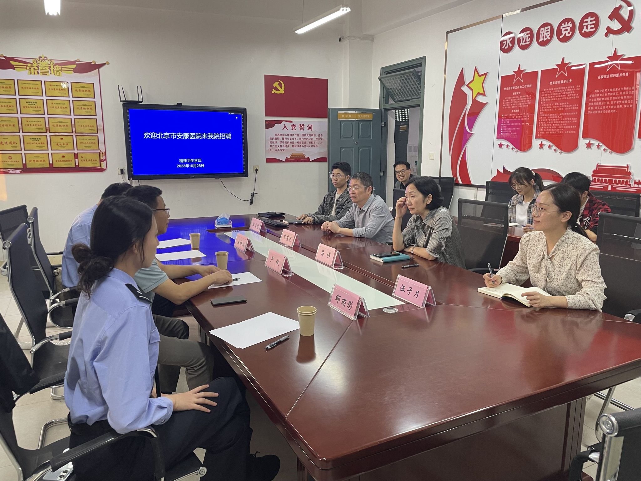招聘会采用线上+线下相结合的方式进行。马嬿书记和焦东亮副院长介绍了精神卫生学院专业设置、人才培养、学科建设以及2024届本科和硕士毕业生培养情况。北京市安康医院严斌院长介绍了医院发展情况、用人需求以及2024届毕业生招聘计划、招录流程、发展待遇等。多名2024届毕业生与来访单位深入交流并达成应聘意向。